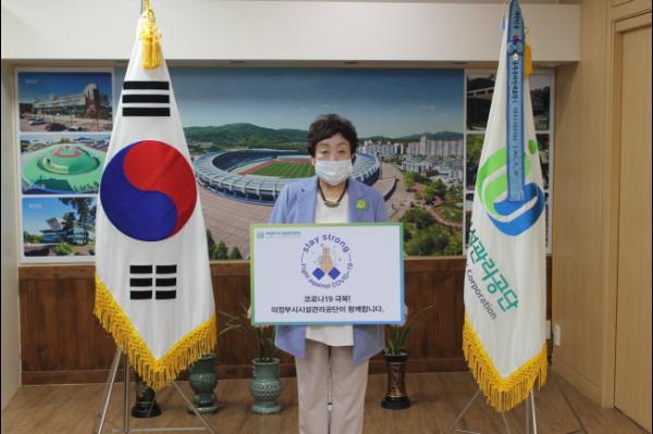 13일 의정부시시설관리공단 강은희 이사장이 코로나19 극복과 조기 종식을 응원하는 ‘스테이 스트롱(Stay Strong)’ 캠페인에 참여하였다.