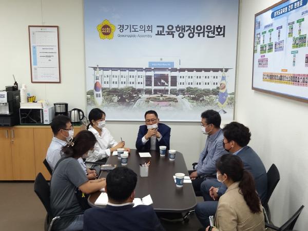 경기도의회 교육행정위원회 안광률(민주, 시흥1) 부위원장은 10일 경기도의회 교육행정위원실에서 목감지구 학부모 대표 3명과 경기도교육청 윤 효 행정국장, 이영창 학교설립과장, 김진아 의무교육담당 사무관이 배석한 가운데 학교설립에 난항을 겪고 있는 시흥 목감1중의 학교신설 대책 마련을 위한 긴급 관계자 회의를 개최하였다. 이날 회의에는 장대석(민주, 시흥2)의원도 자리를 함께 했다.