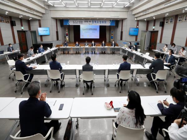 회의에 앞서 더불어민주당 박근철 대표의원은 “경기도와 경기도교육청이 일방적으로 정책을 입안하는 시대는 지났다. 의회와 충분히 소통한 후 도민 맞춤형 정책을 함께 만들어야 한다”며 “정책조정회의가 소통과 협치의 충분한 가교 역할을 하길 바란다”고 전했다.