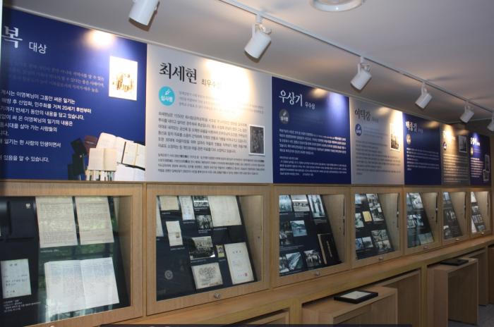 파주 중앙도서관 2층 디지털 아카이브실 앞 로비에 전시되고 있는 제1회 파주 기록물 공모전 수상작들. 대표적인 작품들이 전시돼 있고, 디지털로 전체 출품작을 볼 수 있다.