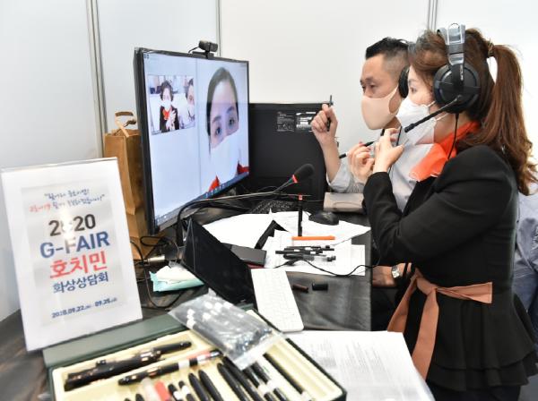 경기도 중소기업들이 지난 22일부터 진행 중인 ‘2020 경기우수상품 해외전시회(G-FAIR) 호치민’에서 비대면 화상 시스템을 통해 베트남 현지 바이어와 수출 상담을 진행하고 있다.