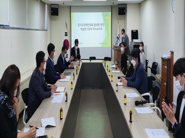 경기도의회 교육행정위 안광률(더민주, 시흥1) 부위원장은 지난 9. 22.(화) 경기도장애인체육회 회의실에서 열린 「경기도 장애인체육 활성화를 위한 학술연구용역 착수보고회」에 참석하였다고 밝혔다.