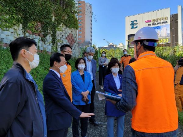경기도의회 건설교통위원회 김명원위원장(더민주, 부천6)은 지난 22일 부천시 역곡3동(범안동) 휴먼시아 단지 옆 저류지 상부에 괴안 119안전센터 청사이전 타당성 검토를 위하여 현장을 확인하고 정담회를 진행했다.