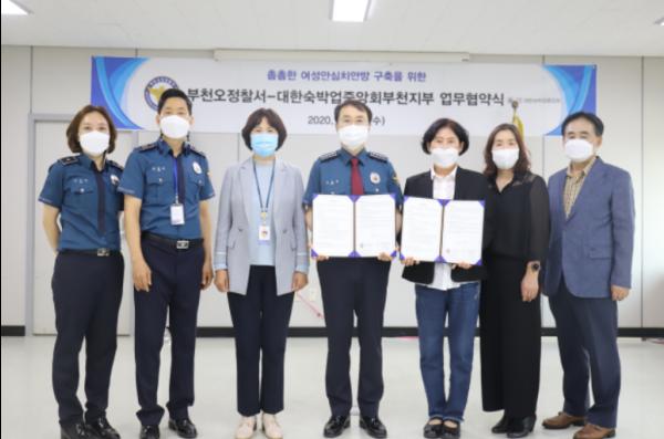 부천시 오정경찰서(서장 장병덕)는 23일 대한숙박업중앙회 부천지부와 불법촬영 등 디지털 성범죄를 예방하고 촘촘한 여성안심치안망을 구축하기 위하여 업무협약을 체결했다고 밝혔다.