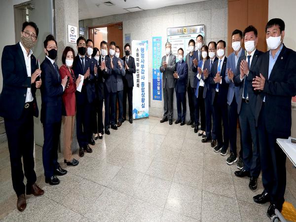 경기도의회 더불어민주당은 13일(화) 의회 3층 정책위원회실 앞에서 ‘행정사무감사 종합상황실’현판식을 갖고 행정사무감사 대응체계를 위한 본격적인 활동에 돌입했다.