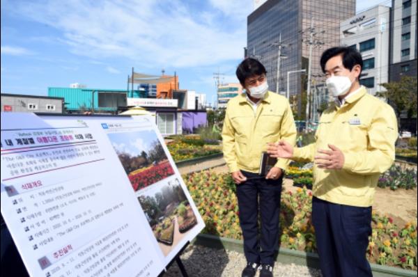 직동근린공원은 많은 시민들이 방문하는 우리 시의 대표적인 공원으로 산책로 입구 플라워 가든에 소국, 아스타, 코리우스, 백묘국 등 10여 종의 다양한 가을철 초화류 3만3천 본을 뉴딜사업 및 공원관리 기간제근로자 54명이 식재하였다.