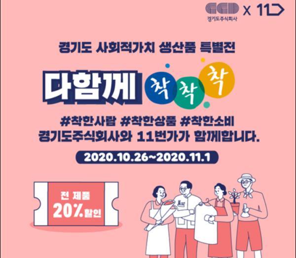 경기도와 경기도주식회사는 온라인 쇼핑몰 11번가와 함께 ‘착착착 11번가 온라인 기획전’을 오는 11월 1일까지 진행한다고 밝혔다.