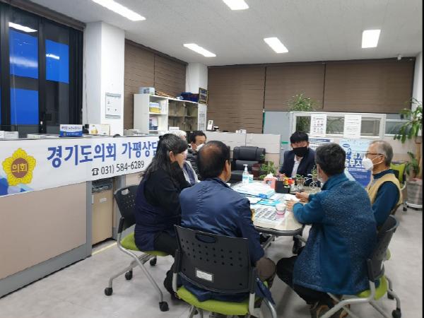 김경호 경기도의회 의원(더민주, 가평)이 27일 가평상담소에서 가평군 친환경연합회 학급급식 포도 출하반 회원들과 친환경농업 유통대책 마련을 위한 정담회를 가졌다.