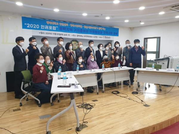 한편, 코로나-19 예방을 위해 사회적 거리두기를 유지하며 진행된 이번 인권포럼은 기지촌 여성들의 삶의 질 개선과 인권회복을 위한 지역사회의 과제를 모색하기 위해 마련되었다.