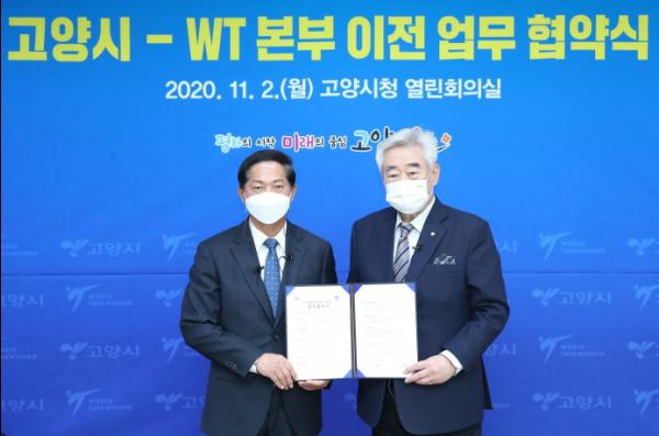 고양시가 11월 2일 시청에서 대한민국에 소재한 유일한 올림픽 경기단체인 세계태권도연맹(이하 WT)과 본부 건립을 위한 업무협약을 했다.