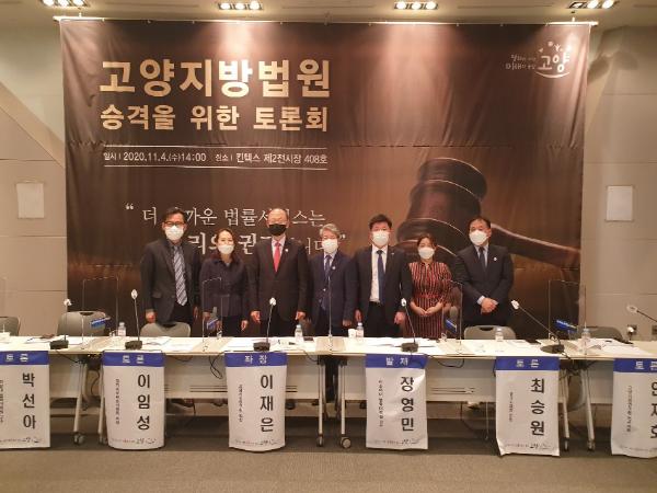 경기도의회 도시환경위원회 최승원 의원(더민주, 고양8)은 4일 킨텍스 제2전시장에서 열린 ‘고양지방법원 승격을 위한 토론회’에 참석하였다.