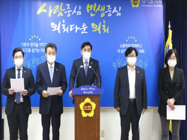 경기도의회 더불어민주당(대표의원 박근철, 의왕1)은 민생과 도민 복리증진 기여도를 중심으로 도정을 평가하여 도민이 행복한 도정발전에 기여할 수 있는 행정사무감사가 되도록 노력할 것을 도민 앞에 약속한다.