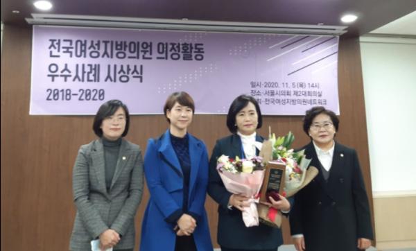 경기도의회 교육기획위원회 위원장 정윤경 의원은 11월 5일(목) 전국여성지방의원네트워크 주관으로 열린 ‘전국여성지방의원 의정활동 우수사례’시상에서 최우수상을 수상하는 영예를 안았다고 밝혔다.