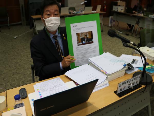 경기도의회 문화체육관광위원회 강태형 의원(더불어민주당?안산6)은 10일 경기아트센터에서 열린 행정감사에서 지난 2019년 행정감사 시에 ’빙산의 일각‘이라며 강하게 지적했던 예술단원들의 ‘투 잡’ 겸직 금지조항에 대한 시정과 개선 보완사항 및 합리적 근무평정에 대해 집중적으로 질의했다.