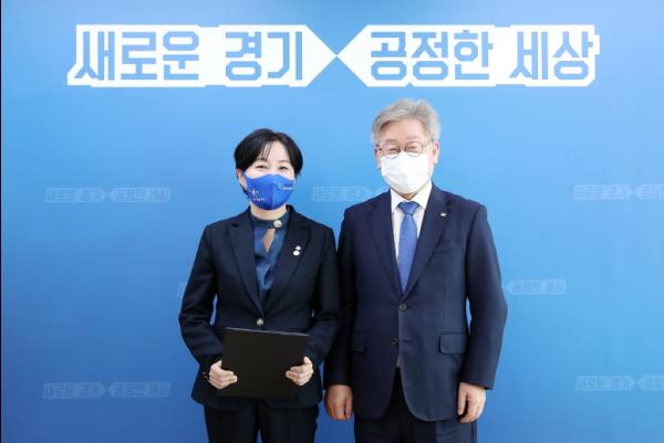 이재명 경기도지사는 10일 경기도청 집무실에서 제윤경 신임 대표이사에게 임명장을 수여했다.