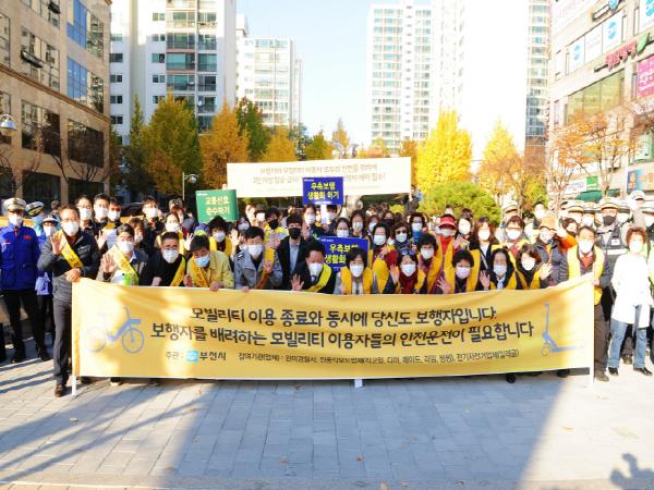 부천시는 지난 11일 ‘보행자의 날’을 맞아 모빌리티 안전 운행과 보행문화 개선을 위해 상동역, 부천시청역, 신중동역에서 ‘보행지킴이 안전 캠페인’을 펼쳤다.