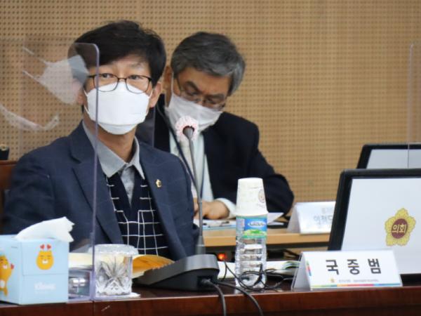경기도의회 교육행정위원회 국중범 의원은 11일 군포의왕교육지원청에서 열린 경기도군포의왕·안양과천·광명교육지원청에 대한 2020년 행정사무 감사에서 ‘지역교육청?지자체의 혁신교육지구 시즌Ⅲ’ 사업 추진을 통해 마을과 함께하는 지역교육공동체 구축, 지역문화예술인과의 활발한 교류을 통한 내실있는 혁신교육을 주문했다고 밝혔다.