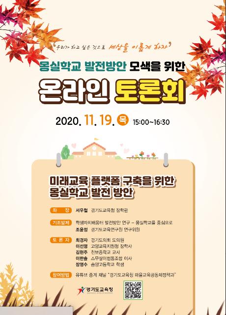 토론 주제는 ▲몽실학교 학생주도 프로젝트 과정 개선방안, ▲미래형 교육과정 제안, ▲몽실학교 운영 지원을 위한 사회적 협동조합 설립 등이다. 참여를 원하는 사람은 누구나 유튜브 채널에 접속하면 된다.