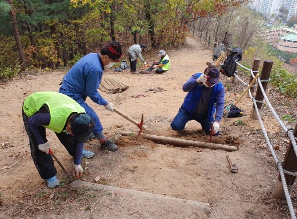 또한, 폭우나 태풍 등의 자연재해로 인해 지속적으로 훼손되고 있는 숲길 구간을 조사하여 친환경 야자매트(3개소, 1km)를 설치함으로써 보행 안정감을 높여 시민들의 커다란 호응과 관심을 이끌어내고 있다. 친환경 야자매트는 토사 유실과 침식 방지 및 등산객들의 미끄럼 방지에 효과가 있으며 내구연한이 지나면 부식되어 자연으로 환원되는 친환경 소재이다.