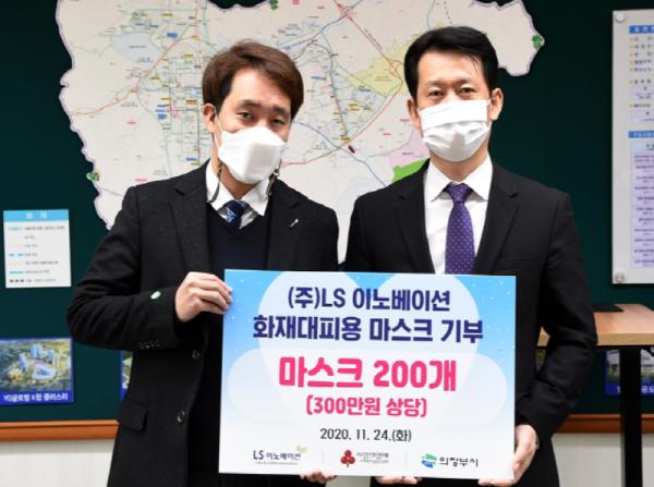 의정부시는 11월 24일 ㈜LS 이노베이션가 화재대피용 습식 마스크 200개를 기탁했다고 밝혔다.