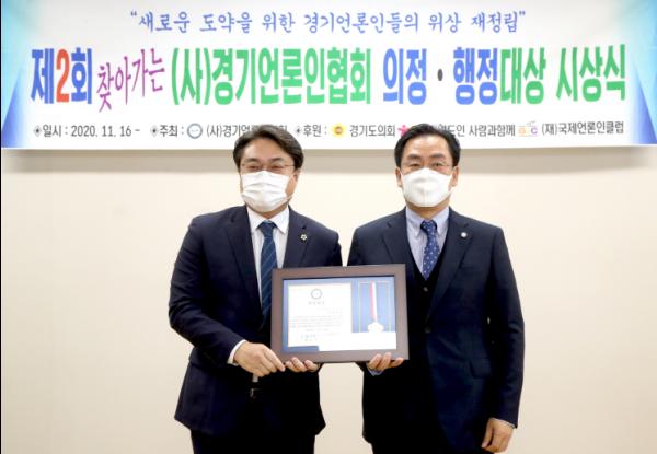시상식을 주관한 경기언론인협회는 경기도 내 인터넷 언론인들의 자질 향상 및 권익보호를 위해 2019년 설립한 단체로, 이번 제2회 의정대상 시상은 코로나19 상황으로 인해 주최측에서 수상자에게 직접 ‘찾아가는 시상식’ 형태로 진행되었다.