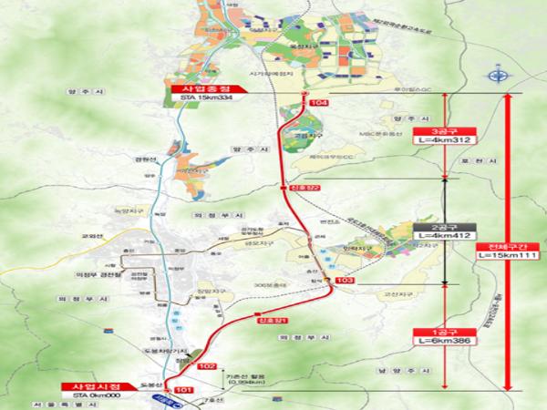 1공구는 서울시 도봉동과 의정부시를, 3공구는 의정부시 자금동과 양주시 고읍동을 잇는 구간이다. 의정부시 송산동과 자금동을 연결하는 ‘2공구’는 지난해 12월 착공해 공사가 한창이다.