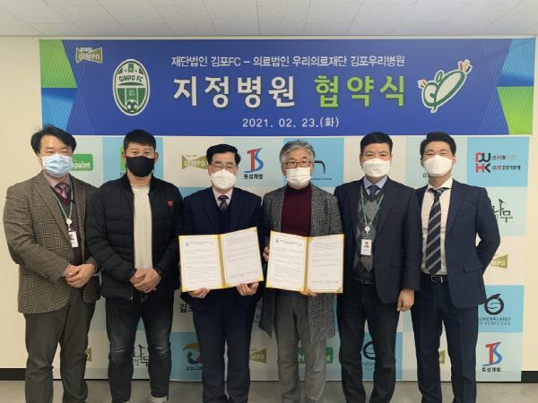 (재)김포FC(이사장 정하영)는 지난 23일 김포우리병원을 ‘김포FC 공식 지정병원’으로 선정하는 협약식을 가졌다고 밝혔다.