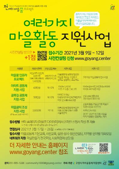 자세한 문의는 고양시자치공동체지원센터로 하면 된다.