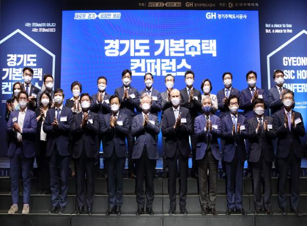 경기도와 경기주택도시공사(GH)는 25일 수원컨벤션센터에서 ‘경기도 기본주택 컨퍼런스’를 개최했다. 이 자리에는 아이너 옌센(Einar H. Jensen)주한덴마크 대사, 장현국 경기도의회 의장, 김홍걸?김승원?조정훈?용혜인 국회의원, 김명원?심규순?최만식 도의원, 곽상욱 경기도시장군수협의회장, 염태영 수원시장, 이재준 고양시장, 임병택 시흥시장, 안병용 의정부시장, 김상호 하남시장, 김보라 안성시장, 이항진 여주시장, 최용덕 동두천시장, 김종천 과천시장, 이헌욱 경기주택도시공사 사장, 지규현 한국주택학회 회장 등이 참석했다.