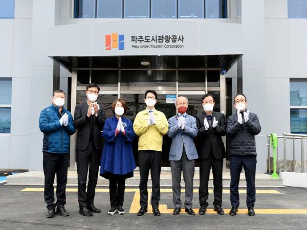지난해 7월 시설관리공단에서 공사로 전환한 파주도시관광공사의 역할이 지역개발사업으로 확장됨에 따라, 조직의 안정적 운영 등을 위한 건물 외벽 리모델링 및 증축(2층→3층) 공사를 같은 해 8월부터 진행했고, 이날 준공을 알리는 현판식을 열었다.
