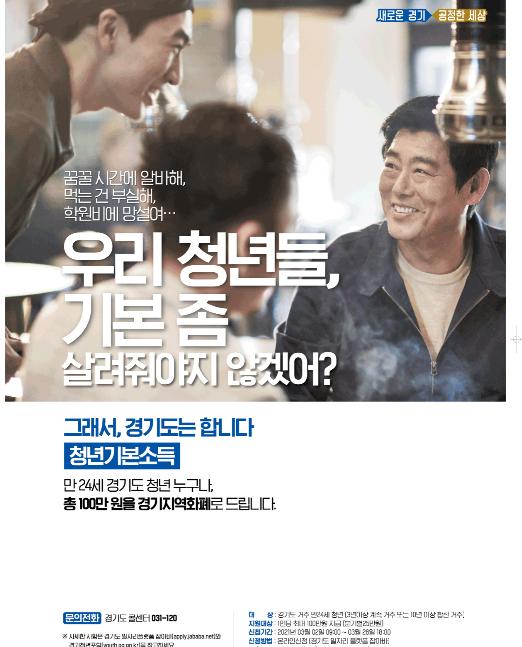 특히 코로나19 장기화로 어려움을 겪는 청년들을 위해 올해 청년기본소득 일괄지급에 동의할 경우 1분기 신청자에게 100만원을 일시에 지급한다.