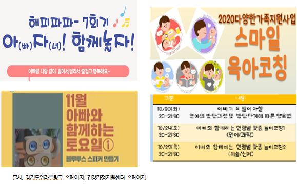 경기도는 지난해 ‘경기도 아빠하이’ 사업을 통해 아빠 육아 참여 필요성에 대한 인식을 높이고 가족 내 양육 부담 완화에 기여한 바 있다. ‘경기도 아빠하이’는 ‘아이가 아빠에게 하이(Hi), 아빠끼리 하이(Hi)의 의미로서 아빠와 아이의 새로운 만남과 성장’을 뜻하는 남성 육아참여모델이다.
