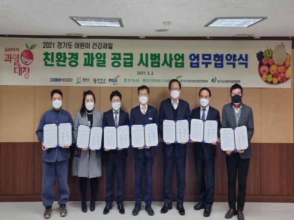 협약에 따라 도는 올해 파주와 광주, 연천 지역의 어린이집 등 880개 시설을 이용 중인 2만9,458명의 어린이를 대상으로 3월부터 12월까지 친환경 건강과일을 공급하게 된다.
