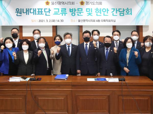 울산시의회에서는 백운찬 원내대표를 비롯한 민주당 의원 17명 대부분이 참석하여 경기도의회 더불어민주당 수석대표단을 환대했다.