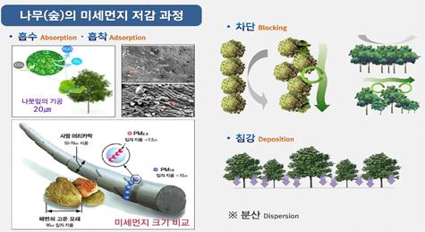 지난 2017년 국립산림과학원이 발표한 연구에 따르면, 도시숲은 도심의 미세먼지(PM2.5)를 40.9%까지 줄이는 효과가 있는 것으로 조사된 바 있다.