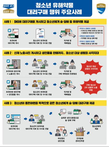 트위터 등 사회관계망서비스(SNS)에 숨어 활동하며 술?담배 등 청소년 유해약물 대리구매, 일명 ‘댈구’ 행위를 한 판매자들이 경기도 특별사법경찰단 수사에 덜미를 잡혔다.