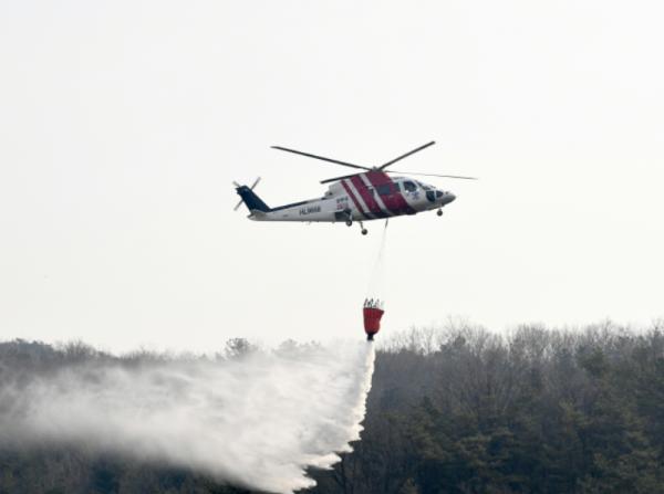 시는 산불임차헬기와 산불 전문 진화 대원을 동원해 ‘산불진화 훈련’을 진행했다.
