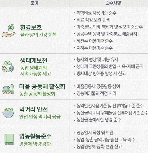 농관원은 또한, 공익직불금 신청 후 농업인들이 지켜야 할 준수사항에 대한 교육‧홍보도 추진한다.