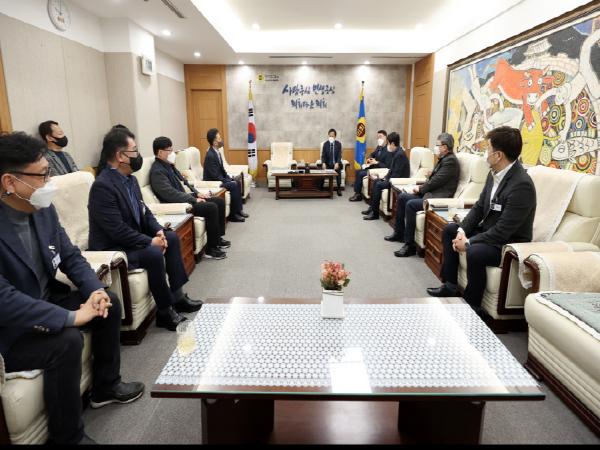 장현국 경기도의회 의장(더민주, 수원7)이 16일 ‘코로나19 생활치료센터’ 근무를 앞둔 의회 사무처 직원들을 격려했다.