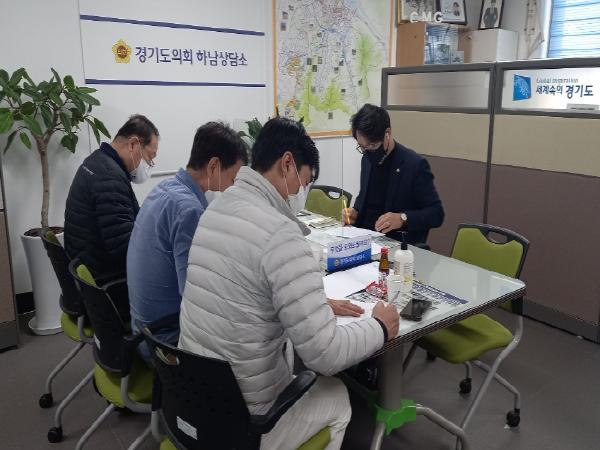 경기도의회 건설교통위원회 추민규 의원은(더불어민주당, 하남2) 경기도의회 하남상담소에서 하남택시 총량제 산정기준 제도개선에 따른 하남신장개인택시 추진위로부터 하남택시 증차에 대하여 의견을 나누었다고 16일 밝혔다.