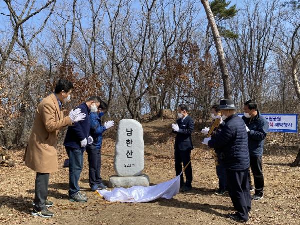 경기도남한산성세계유산센터는 남한산성도립공원 지정 50주년(1971년 3월 17일 지정)을 기념해 17일 남한산성 내 대표산인 남한산 정상 해발 522m에 정상석을 설치하고 제막식을 열었다.