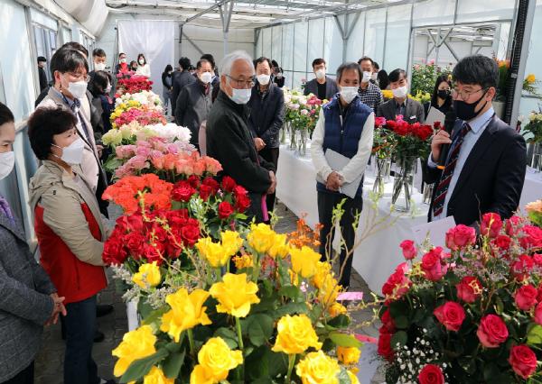 경기도농업기술원이 17일 기술원 내 장미 연구온실에서 재배농가, 유통관계관, 종묘업체 등 30명이 참석한 가운데 ‘장미 신품종 및 유망계통에 대한 평가회’를 개최했다.