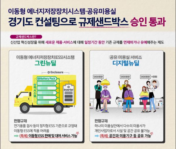 경기도는 지난 11일 산업통상자원부가 개최한 ’21년 제1차 산업융합 규제특례심의위원회에서 도가 컨설팅한 규제샌드박스 과제 2건이 실증특례 승인을 통과했다고 18일 밝혔다.