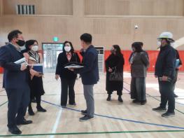 이번 방문은 금정중학교 체육관 준공 전 최종 공사 진행 사항을 점검하고 시설을 확인하기 위해 마련된 자리로, 정윤경 교육기획위원장은 경기도교육청 관계자들과 함께 직접 현장을 둘러보며 점검하였다.