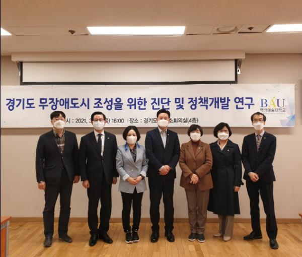 연구용역 착수보고회에는‘경기도의회 도민이 행복한 무장애도시 연구회’최종현 회장을 비롯해 권정선 ․ 박옥분 ․ 이필근 ․ 이애형 경기도의원, 조경선 경기도 장애인복지과 팀장, 김제선 교수(백석예술대 산학협력단) 등이 참석했다.