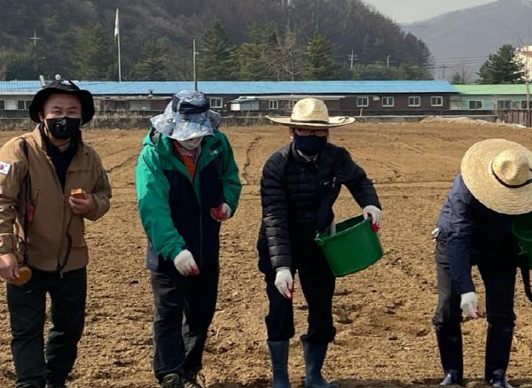 파주시 법원읍 상인회와 가야4리 마을회가 지난 18일, 해바라기 축제장 부지에서 파종 행사를 열었다.