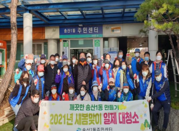 의정부시 송산1동주민센터는 새봄을 맞아‘깨끗한 송산1동 만들기’라는 슬로건으로 3월 16일 새마을부녀회·지도자협의회와 함께한 새봄맞이 대청소를 시작으로, 17일에는 주민자치위원회·통장협의회 회원, 공무원 등 총 50여 명이 참여한 가운데 새봄맞이 대청소를 실시했다.