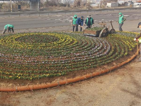 김포시 고촌읍 각 마을에서 봄맞이 꽃 식재에 나섰다.