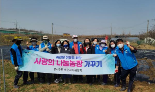 고양시 덕양구 성사2동 주민자치위원회는 지난 19일 지역 내 어려운 이웃을 돕기 위한 ‘사랑의 나눔농장 가꾸기’ 감자 심기를 실시했다.