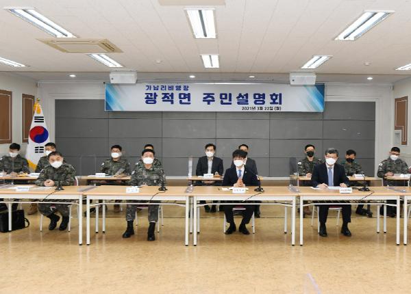 양주시는 22일 광적농협 회의실에서 국방부 차관 등이 참석한 가운데 국방부 주관 광적면 가납리 헬기부대 배치 관련 주민설명회가 열렸다고 밝혔다.